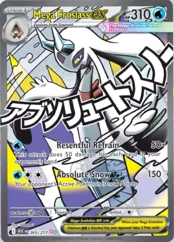 The Mega Froslass ex SIR is one of the more gorgeous SIR cards we’re getting in Ascended Heroes, and should be among the most valuable given it’s strong competitive edge among the Ascended Heroes Pokemon decks.