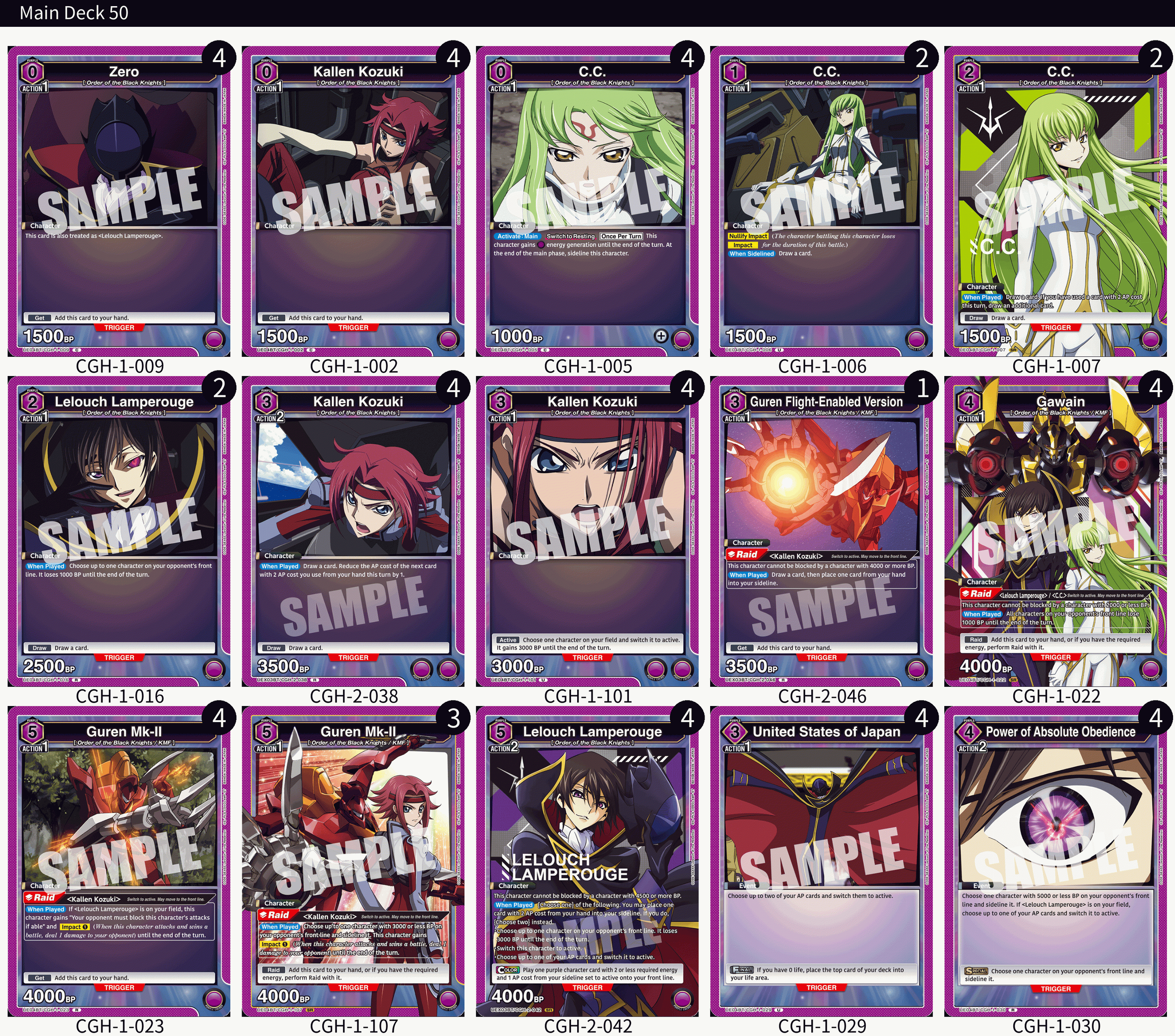 Actually, this combo unlocks some considerable advantages for Code Geass Purple, while simultaneously covering one of the deck’s primary weaknesses – an easy-to-overextend energy line.