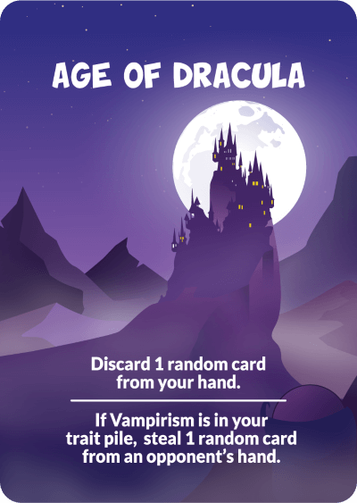 I especially like how these traits interact with certain age cards, like the Vampirism interacting with the Age of Dracula to give you an edge over the competition (so glad I chose Vampirism as my dominant trait, by the way).