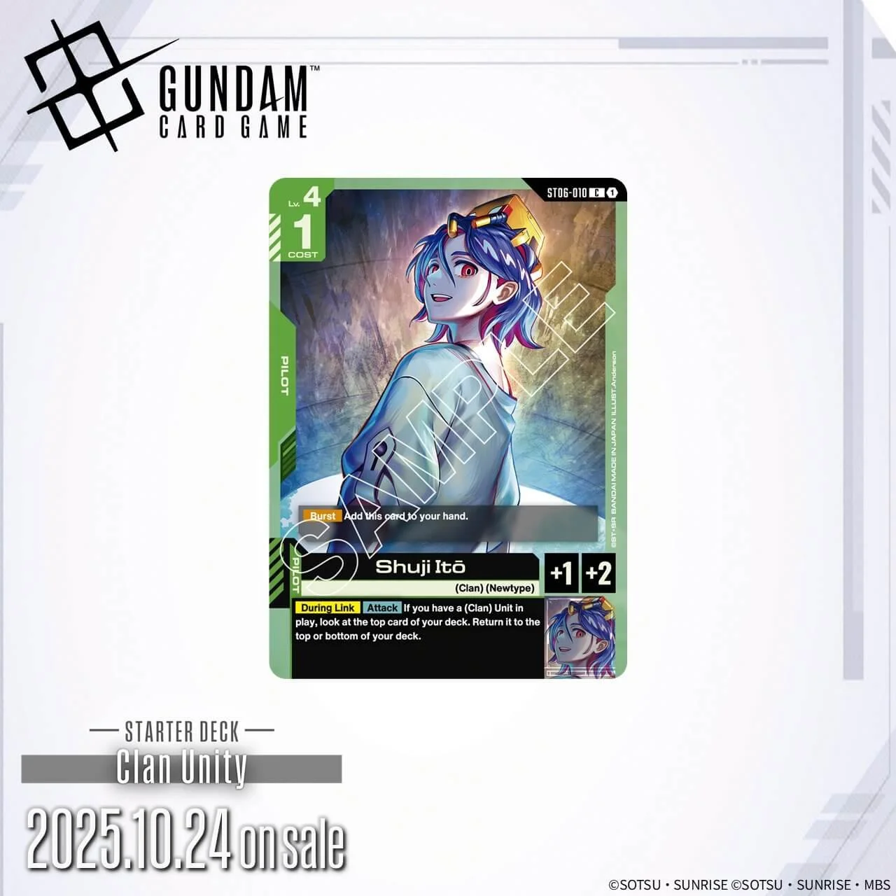 Two new starter decks has been confirmed for Gundam’s second set. The first to be spoiled was the “Clan Unity,” starter deck based on the “Mobile Suit Gundam GQuuuuuuX” series.