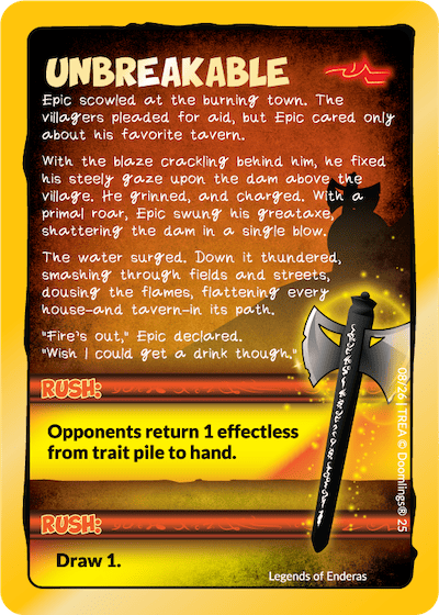 To help work with this a bit, we tried doing a lower card count of trait cards and building a game that primarily focused on Castle Glass combos and Dinolings. The end result was a pretty fun game, but I do think given the more closed garden nature of Castle Glass it works best in a more limited format versus the massive Enderas which feels like it can easily fit into any game mode.