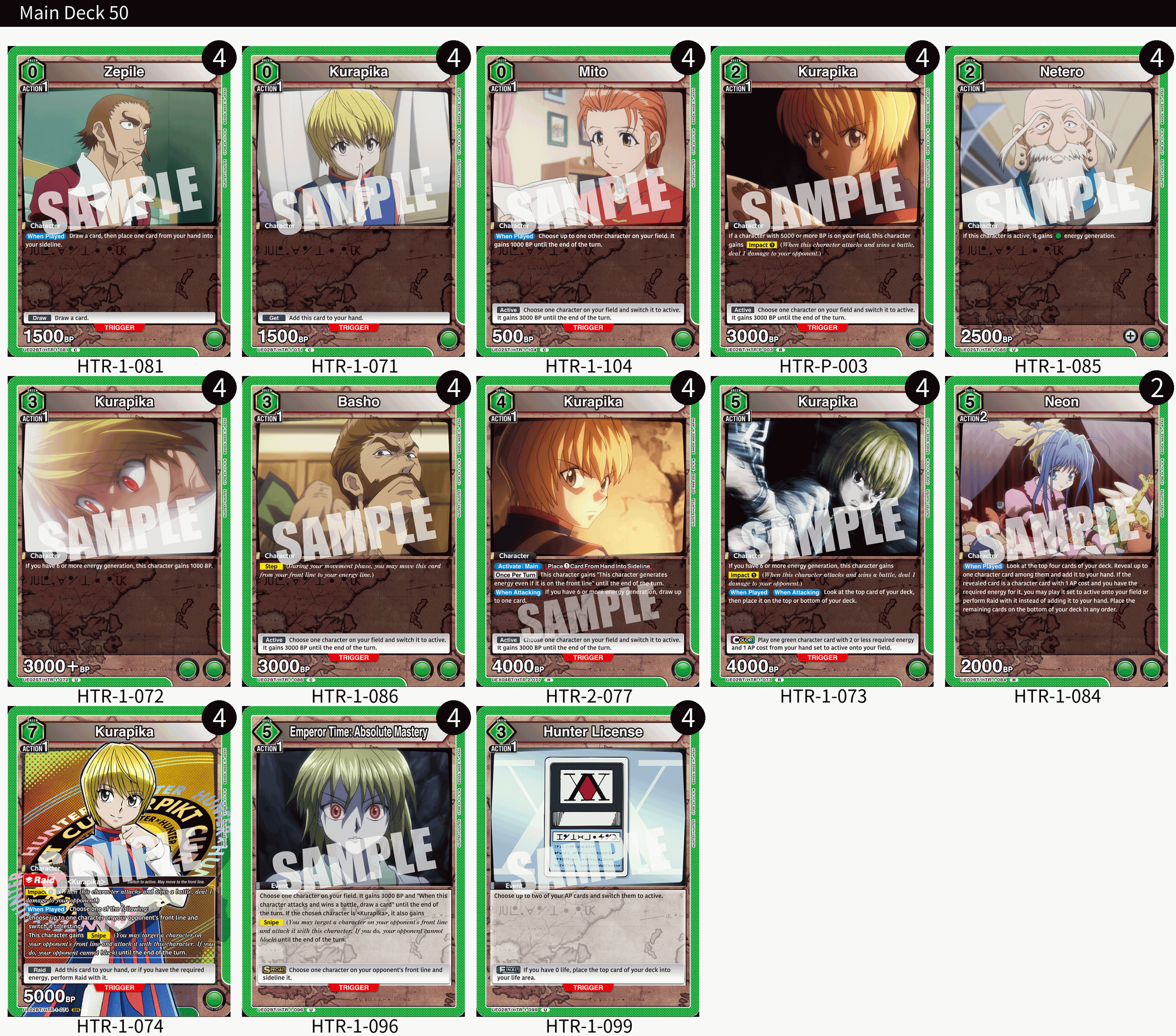 Finally, there’s Hunter x Hunter. Despite being one of the weakest sets overall, Hunter x Hunter has a loyal fan base, and the Rare Battle events for this one should be popular. While there are plenty of strong Hunter x Hunter decks players will undoubtedly get creative with, my money is still on ye old faithful Kurapika.