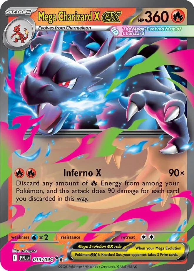 Since originally adding Mega Charizard ex to this card list, however, the Pokemon Company has officially revealed the card via the official Pokemon TCG X account for the UK.
