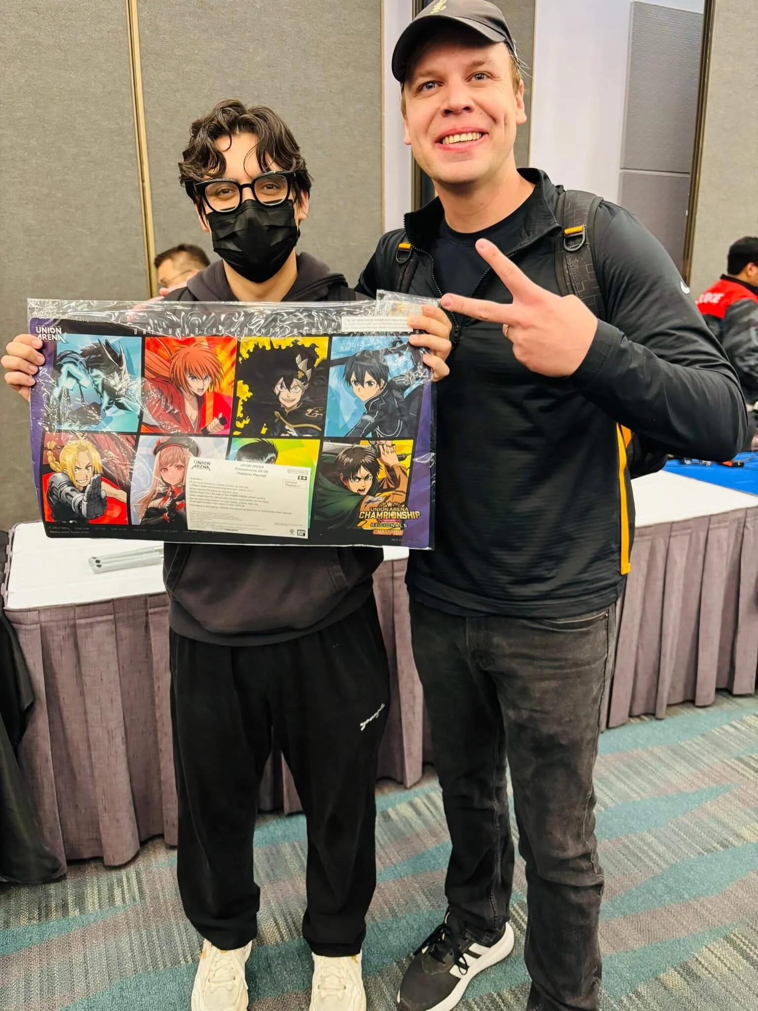 Me with Mylo shortly after he claimed his victory over 250+ players at the UNION ARENA Los Angeles Regionals.