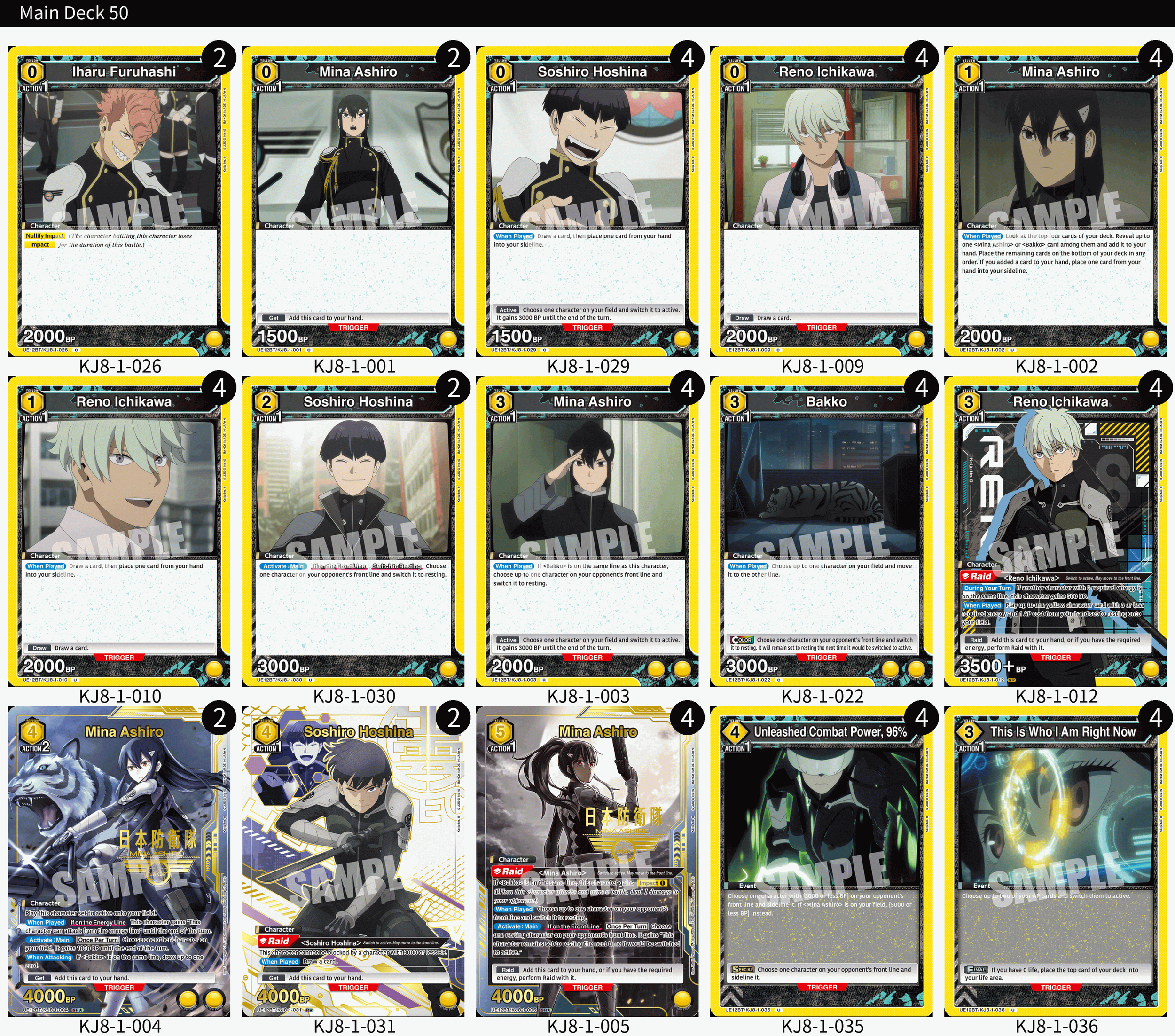 Currently my favorite UNION ARENA deck and easily the strongest Kaiju No. 8 deck of them all, this deck’s strongest card is five-cost Mina herself.