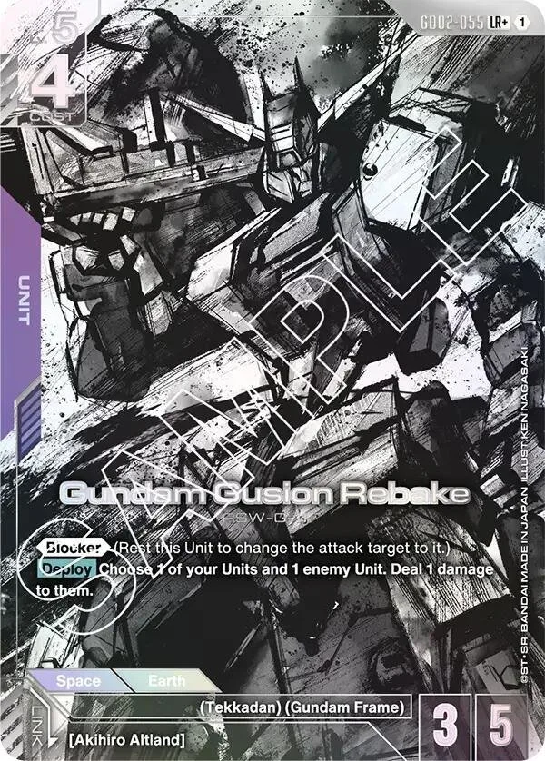 Moving on from the LR++ cards at the top of the heap, the next card on the list is the Gundam Epyon from the immensely popular Gundam Wing series. This card boasts a powerful collection of stats and abilities. However, it’s the gorgeous and unique flair with which it is designed that really sets it apart as a unique chase, harkening back to some of the motifs we saw explored in the original Gundam Beta expansion.
