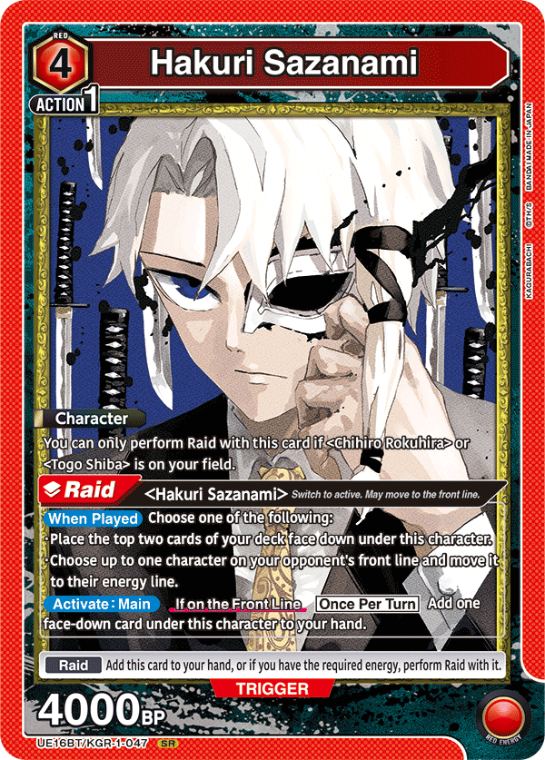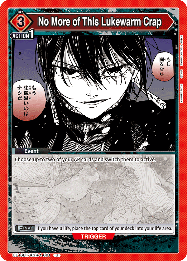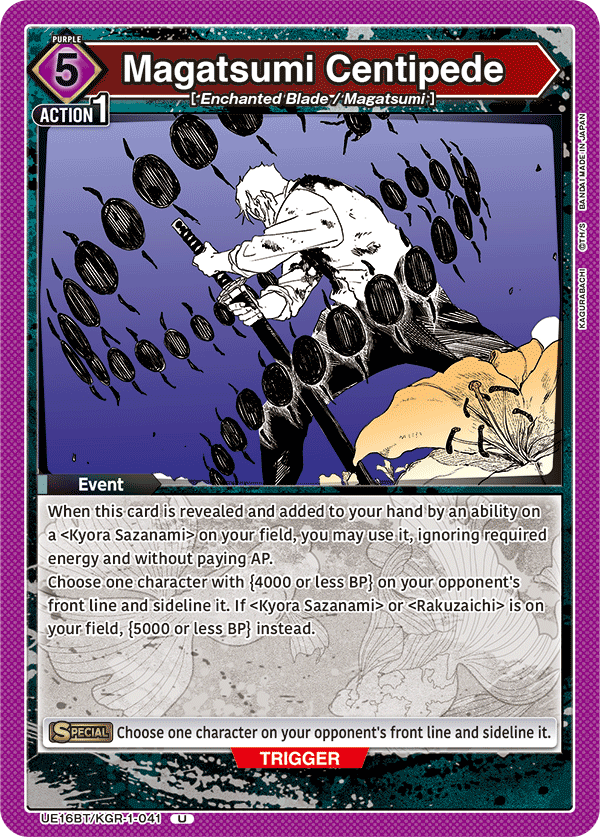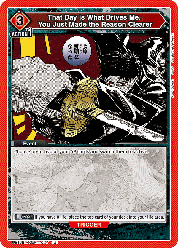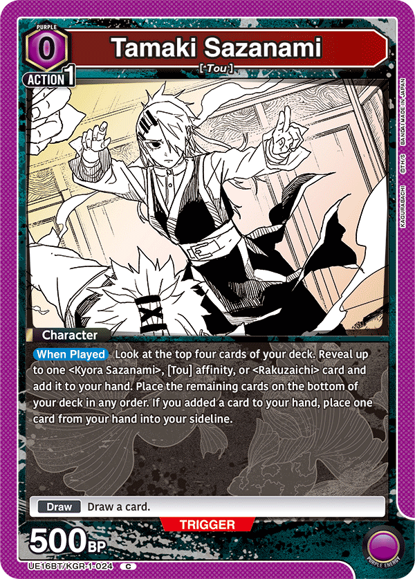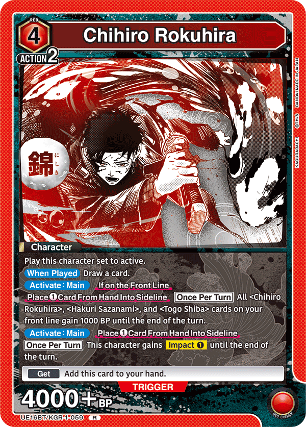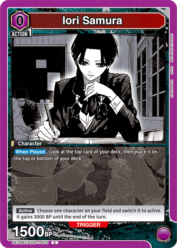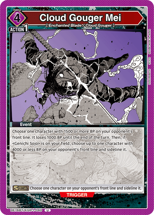 Kagurabachi is only the second set in the UNION ARENA English Version to have just two energy colors: Purple, and Red. However, given how powerful one of these colors is, it will still have a huge impact on the meta. Yet, it’s not just its two-color limit that makes this set stand out – it’s also the first ever manga-based set released in English. Diehard Kagurabachi fans (of which there are many) are going to go nuts over this massive set while players will buy it for its powerful strategies.