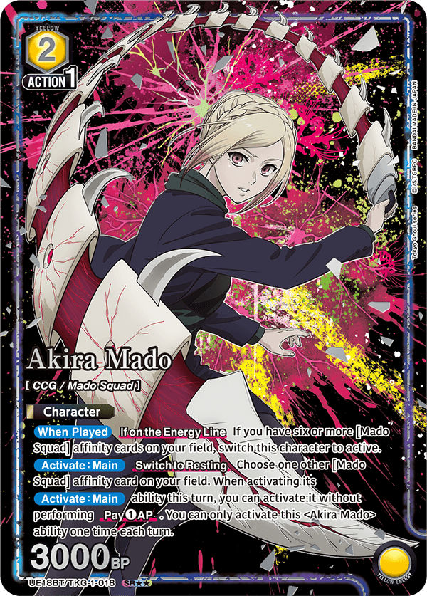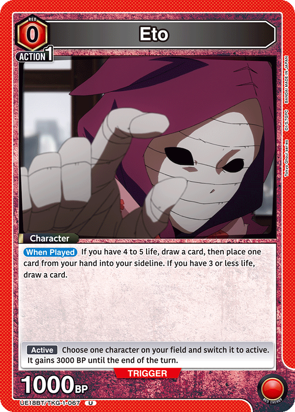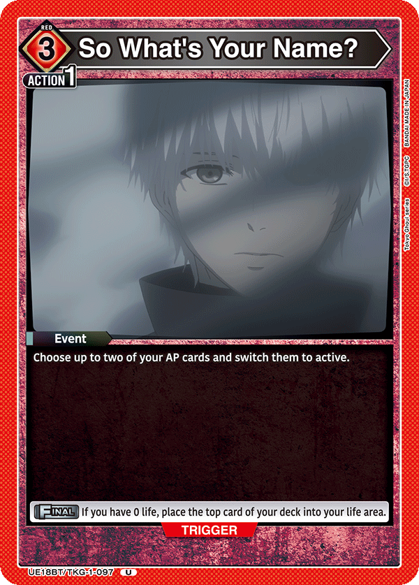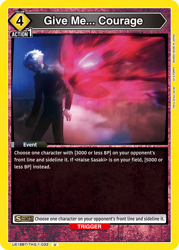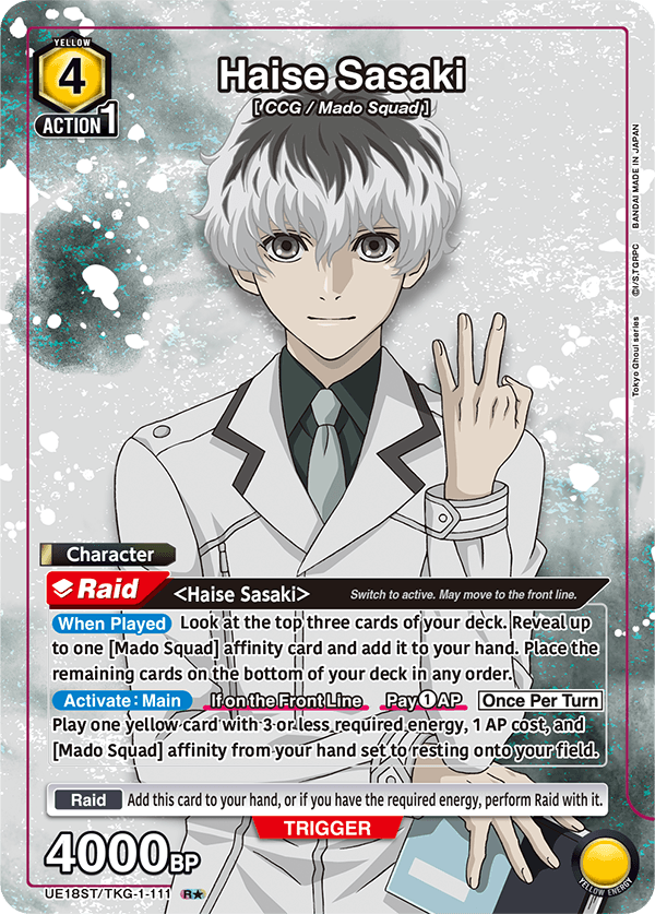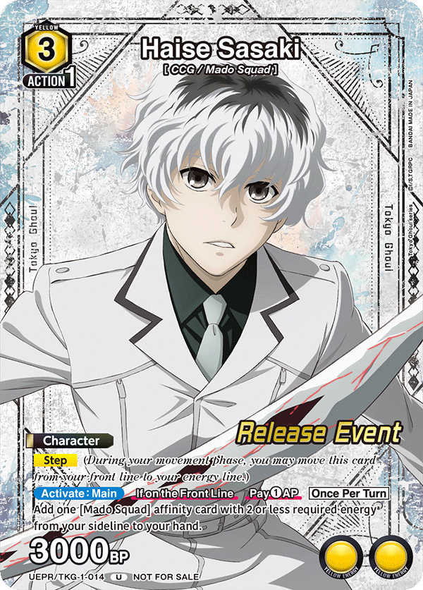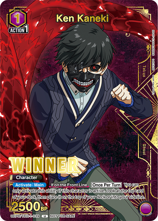 Those who attend a UNION ARENA: Tokyo Ghoul release event will get this alt art Sasaki card just for participating. Anyone who wins a release event will get the same card only in foil with the Winner stamp on it.