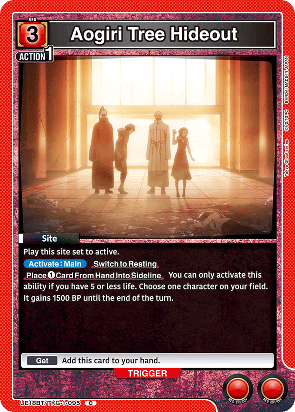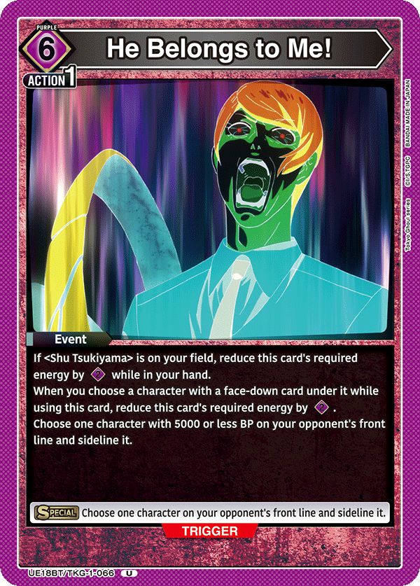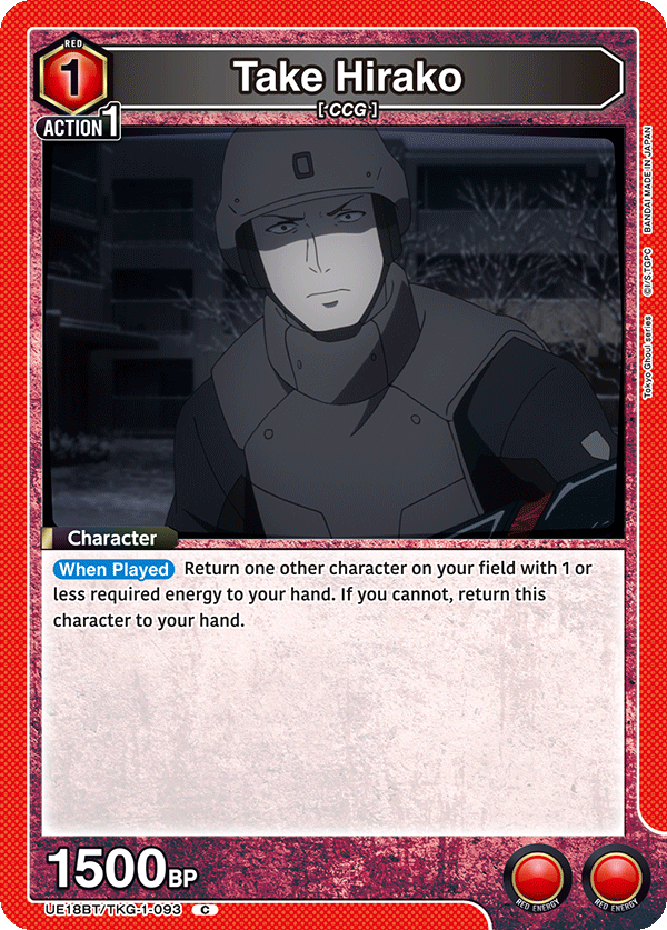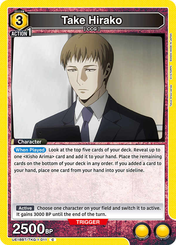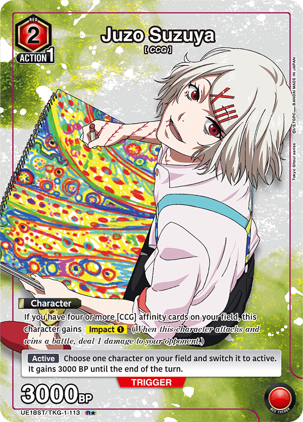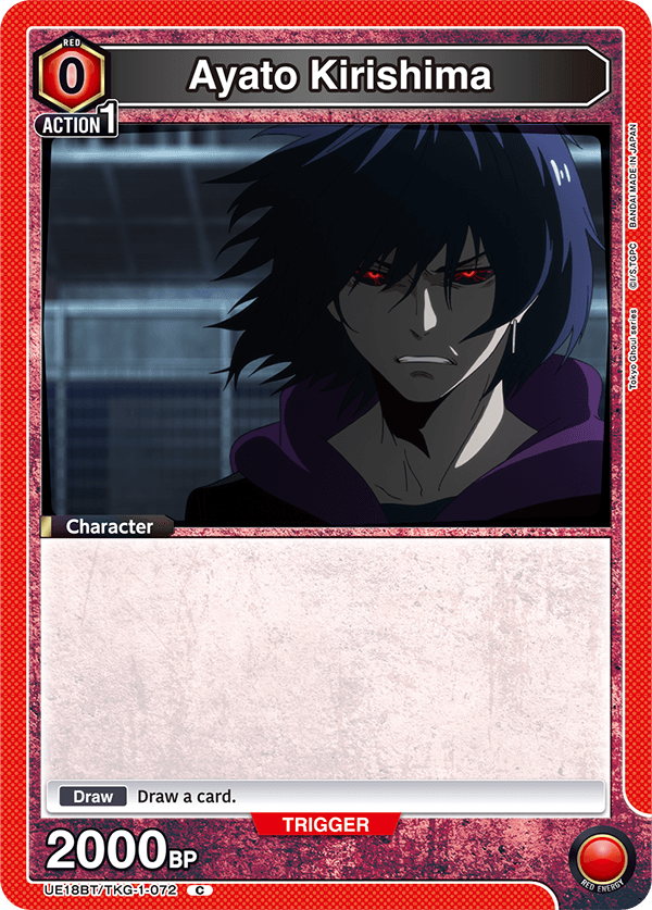 As per usual, the Tokyo Ghoul will include a promotional pack that includes key cards for the other two energy colors. You can see the regular version of the cards below, as well as their rarer alternate art versions.