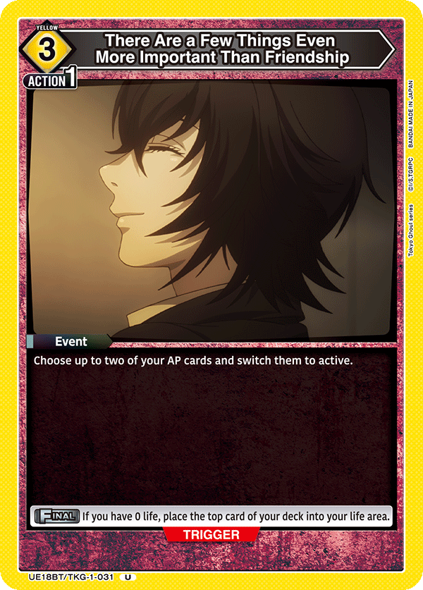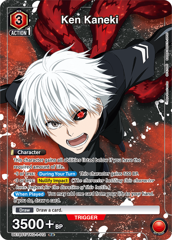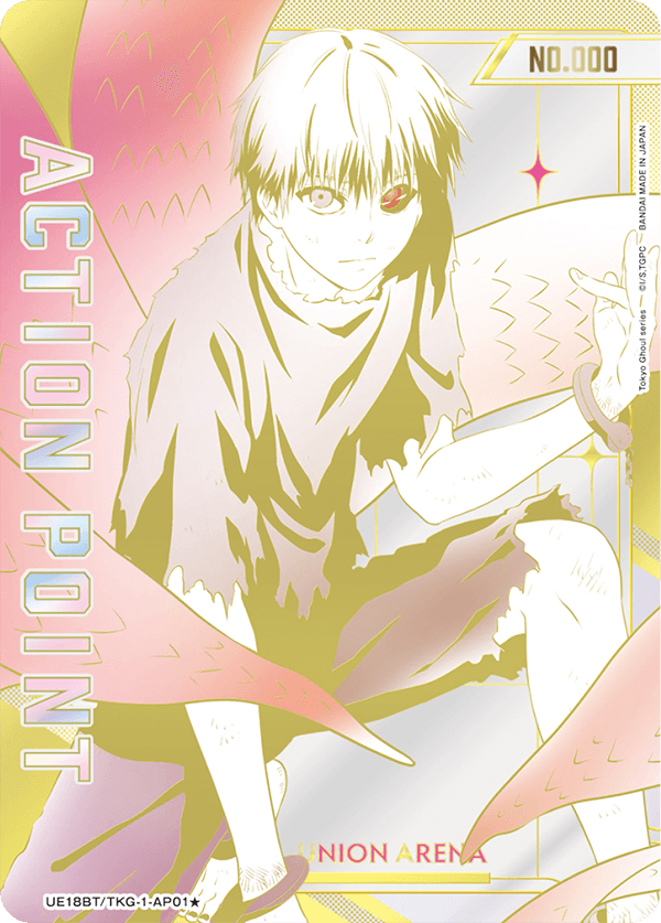 This sick looking Ken Kaneki card is only obtainable by topping a UNION ARENA store tournament. I’ve already won mine, and it looks gorgeous in person.