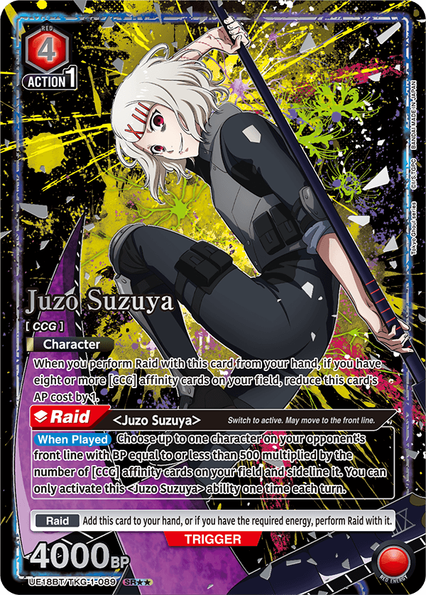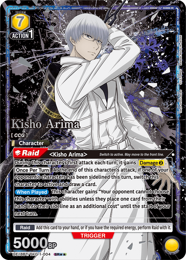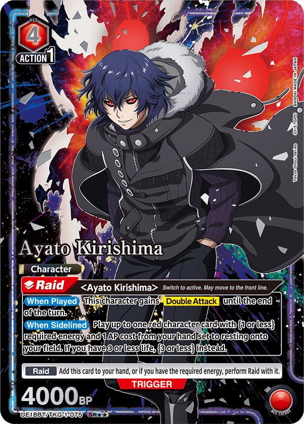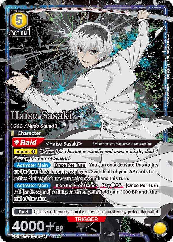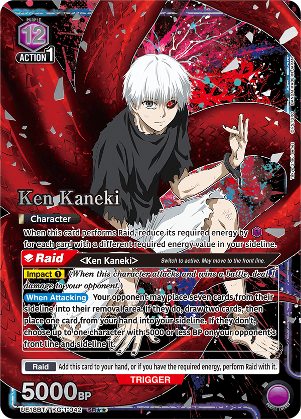 Tokyo Ghoul has a range of impressive and highly collectible alternate art or “secret rare” cards that you can get in booster packs. While many of these are gorgeous and likely to be highly valuable/collectible, the two standouts to me are easily the serialized AP cards.