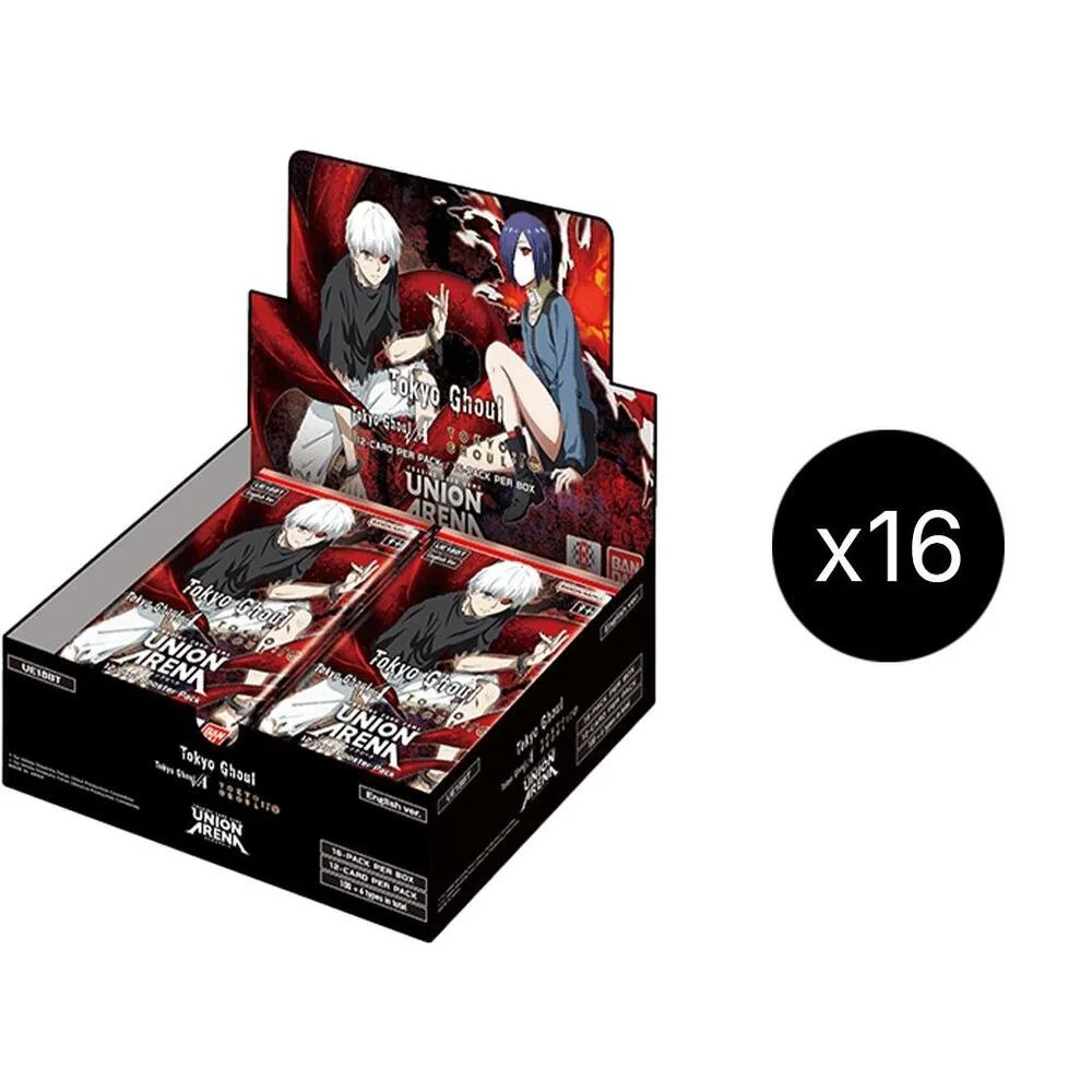 A case includes 16 Tokyo Ghoul booster boxes, and guaranteed hit rates unlike loose booster boxes which could potentially be from a “dead case” that’s already seen the top chase cards pulled from it.