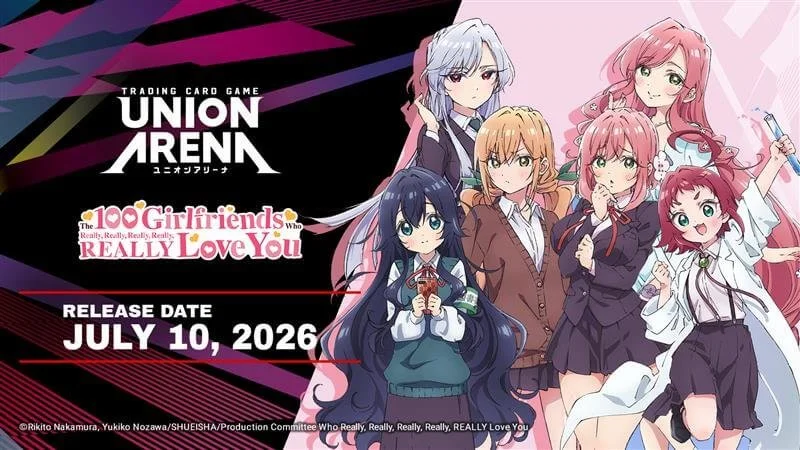 Seemingly out of nowhere, Bandai has dropped a ton of news for UNION ARENA players and fans including two new titles added to the English Version: The 100 Girlfriends Who Really, Really, Really, Really Really Love You releasing on July 10, 2026, and Re:ZERO with an unconfirmed release date. But that’s not all. We were also given a sneak peek at the next Rare Battle Season featuring NIKKE and Demon Slayer Vol. 2, additional spoilers for the next sets coming out: Evangelion and Sword Art Online Vol. 2, as well as an update on the 2026-2027 Championship series.