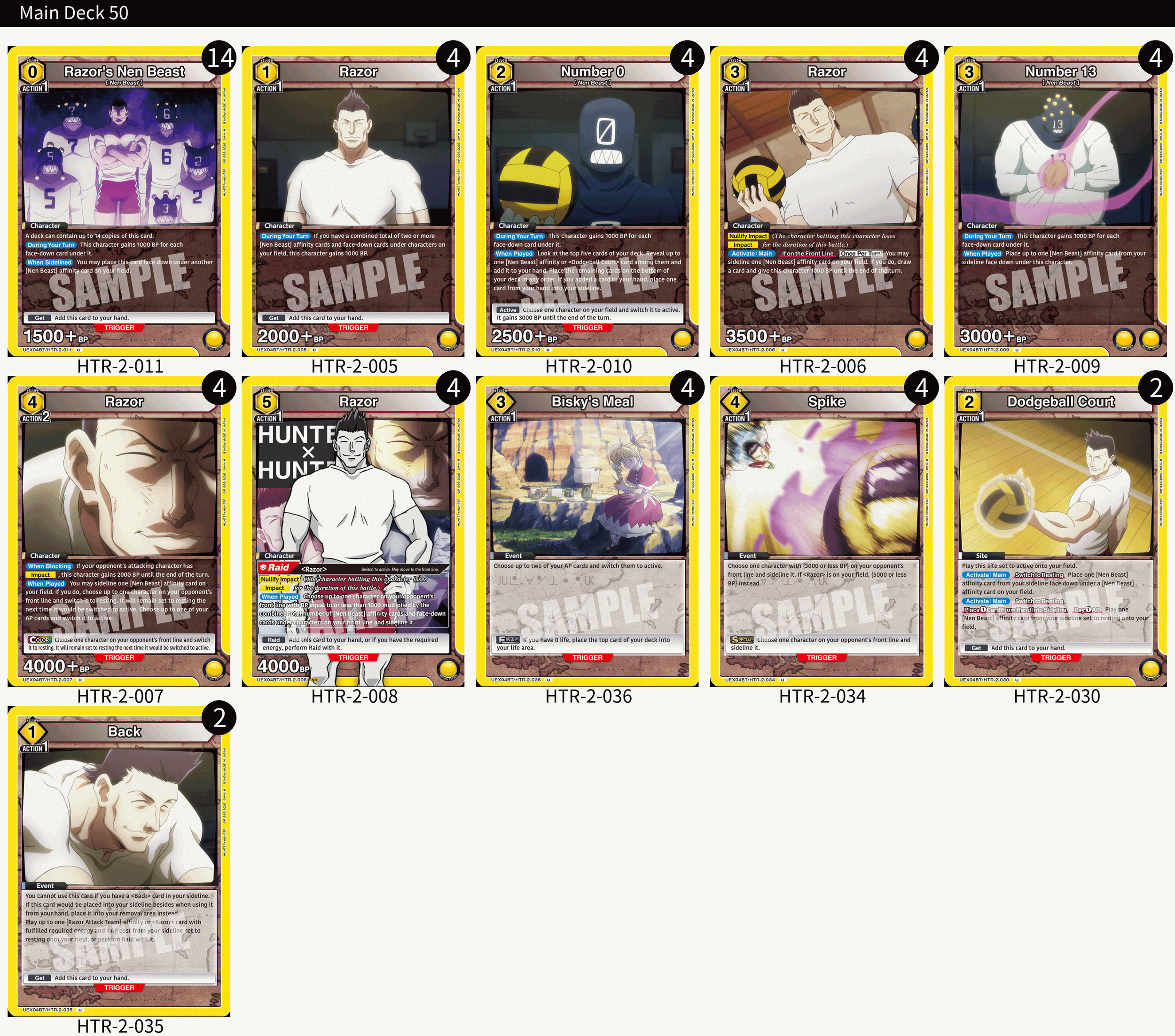 So let’s talk about Razor – the number two deck in Hunter x Hunter Vol. 2. This deck feels really, really interesting from the get-go, although it’s strongest advantage are its two very solid Razor attackers.