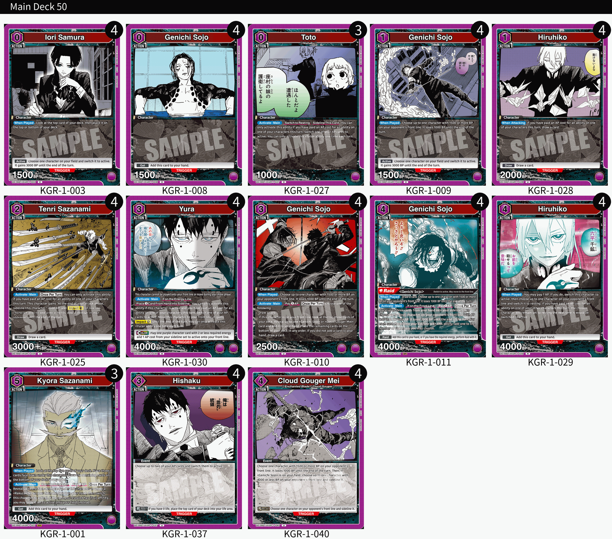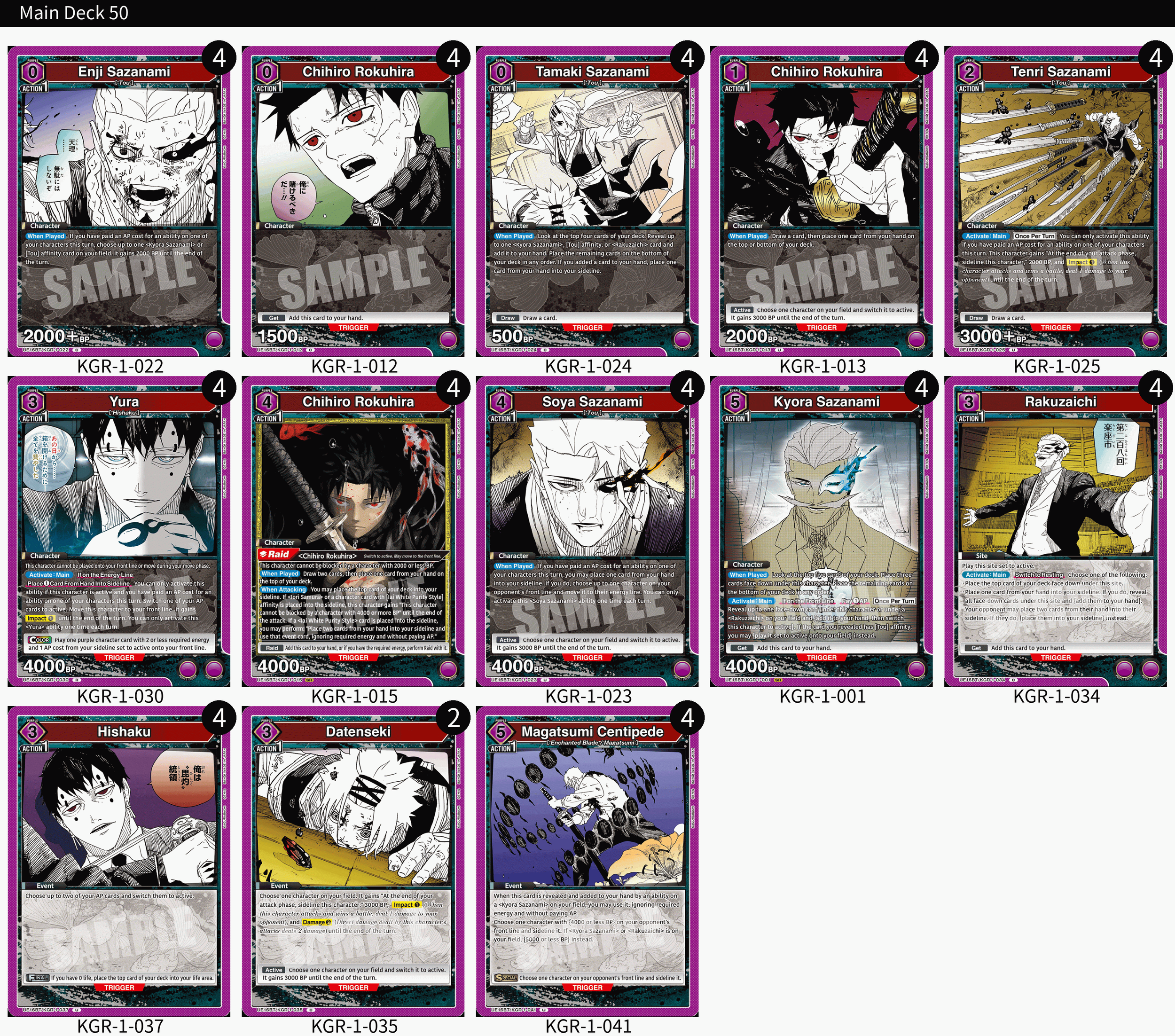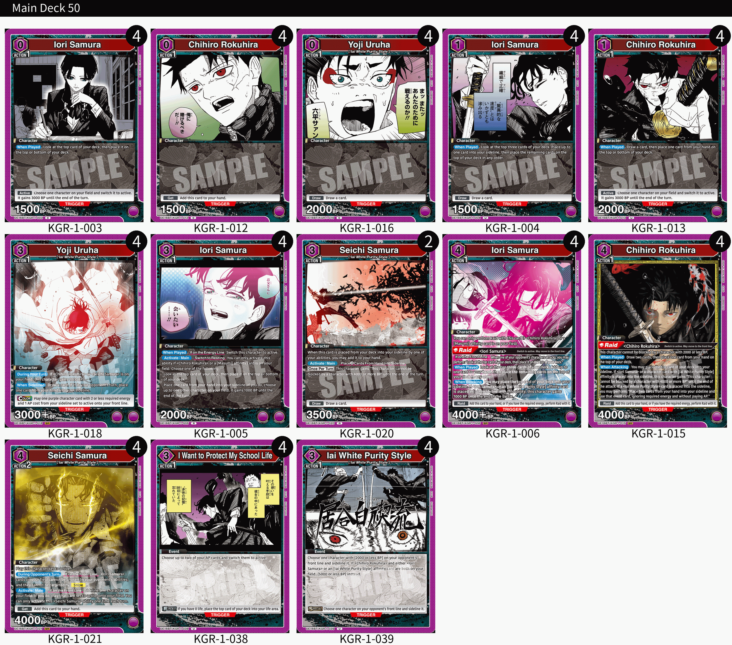 As is the case with a lot of sets, Kagurabachi’s Purple energy color feels like it has a lot of overlap between decks. Cards used in this build can be used in the Sojo-focused deck, and the Chihiro from his own deck with lori fits in well here. But in this set’s case, the runner up in terms of power to Red Kagurabachi’s undisputed throne is arguably this Chihiro/Kyora build.