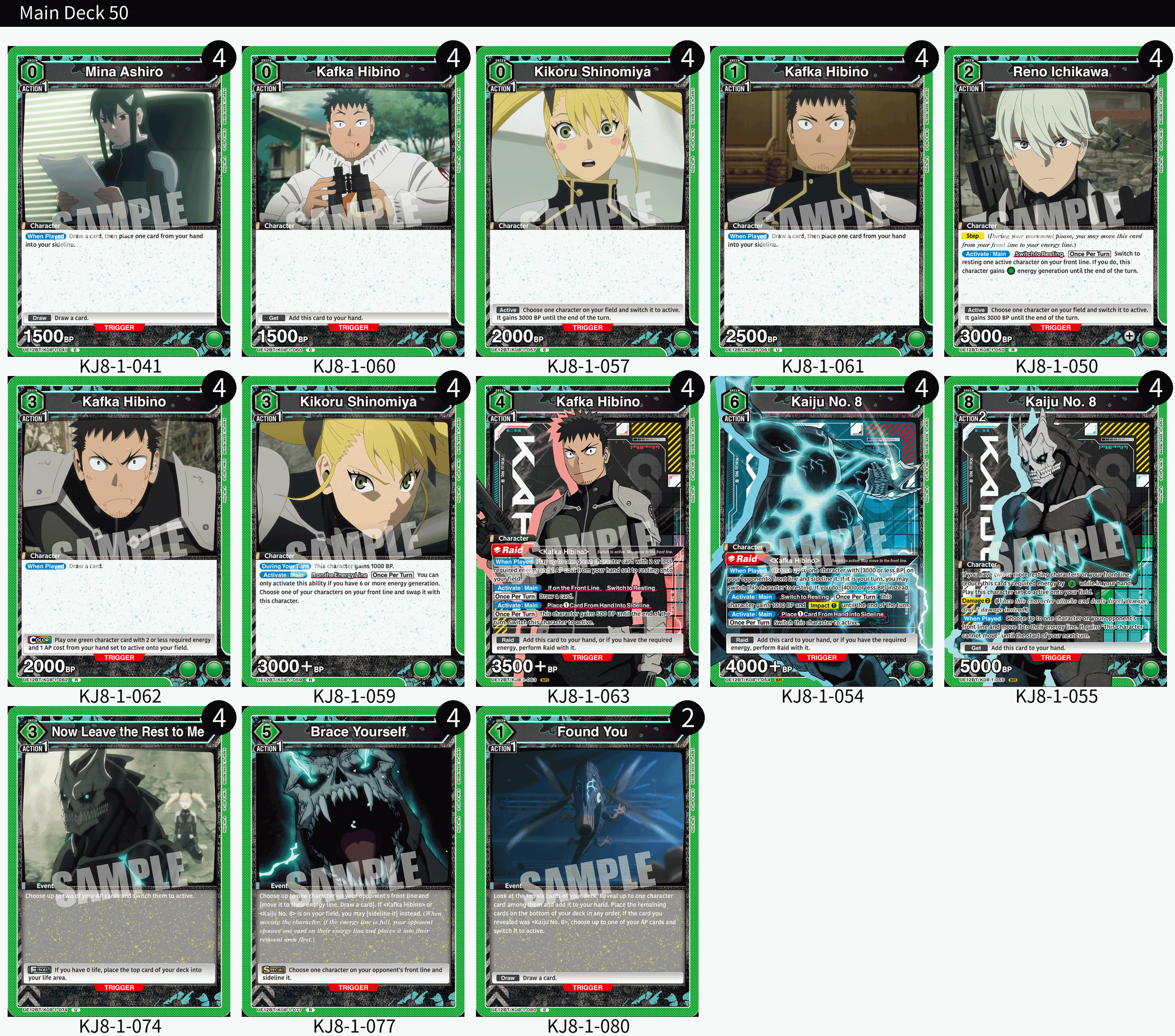 One of the best Kaiju No. 8 decks is easily also one that bears the titular character: Kaiju No. 8 himself. And rightfully so – this guy’s a powerhouse in his own respective anime. What I particularly like about this Kaiju deck is that it feels like it could be a viable, higher energy green deck – something which has been largely missing from the UNION ARENA meta as of late (apart from Lancelot).