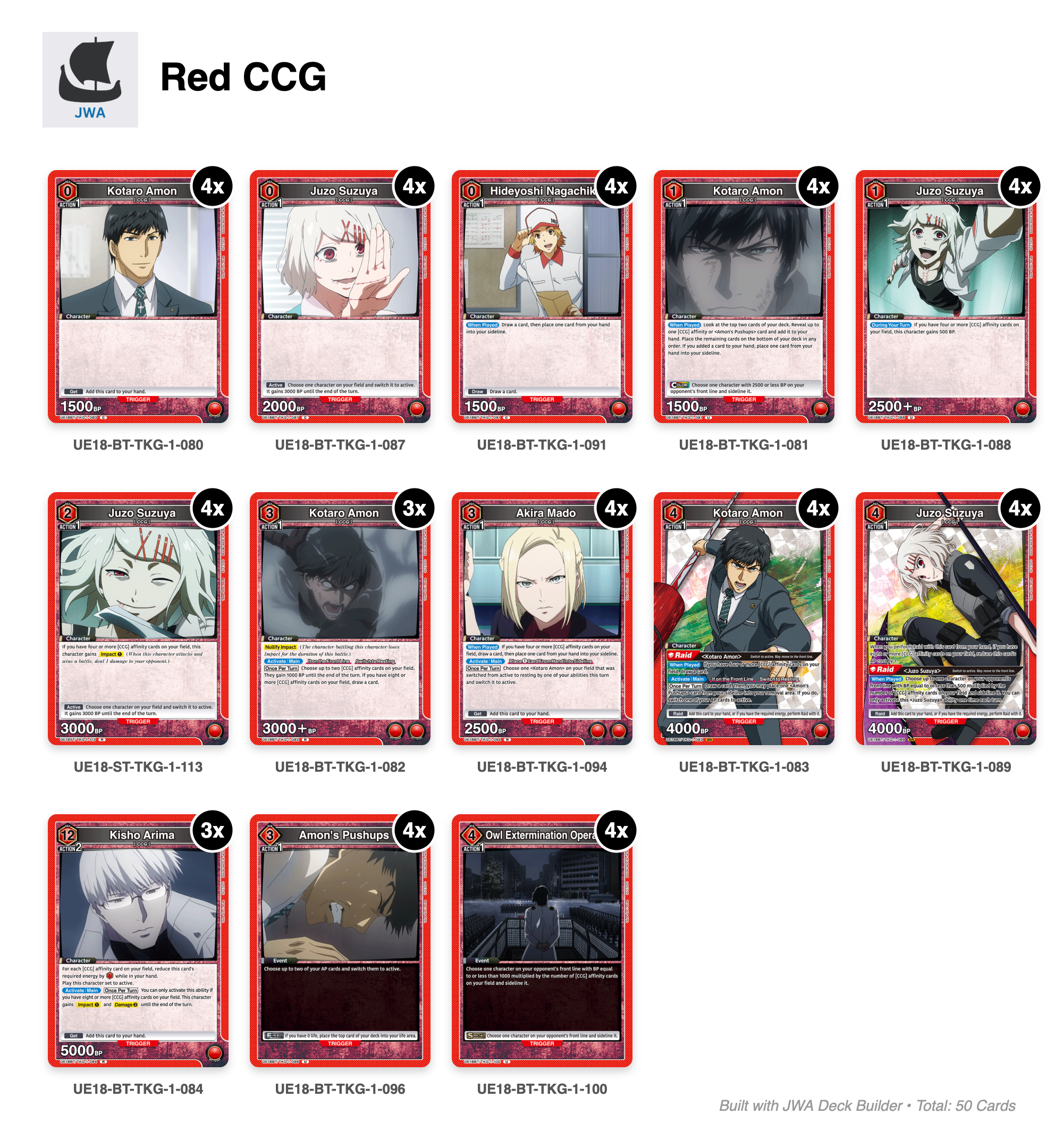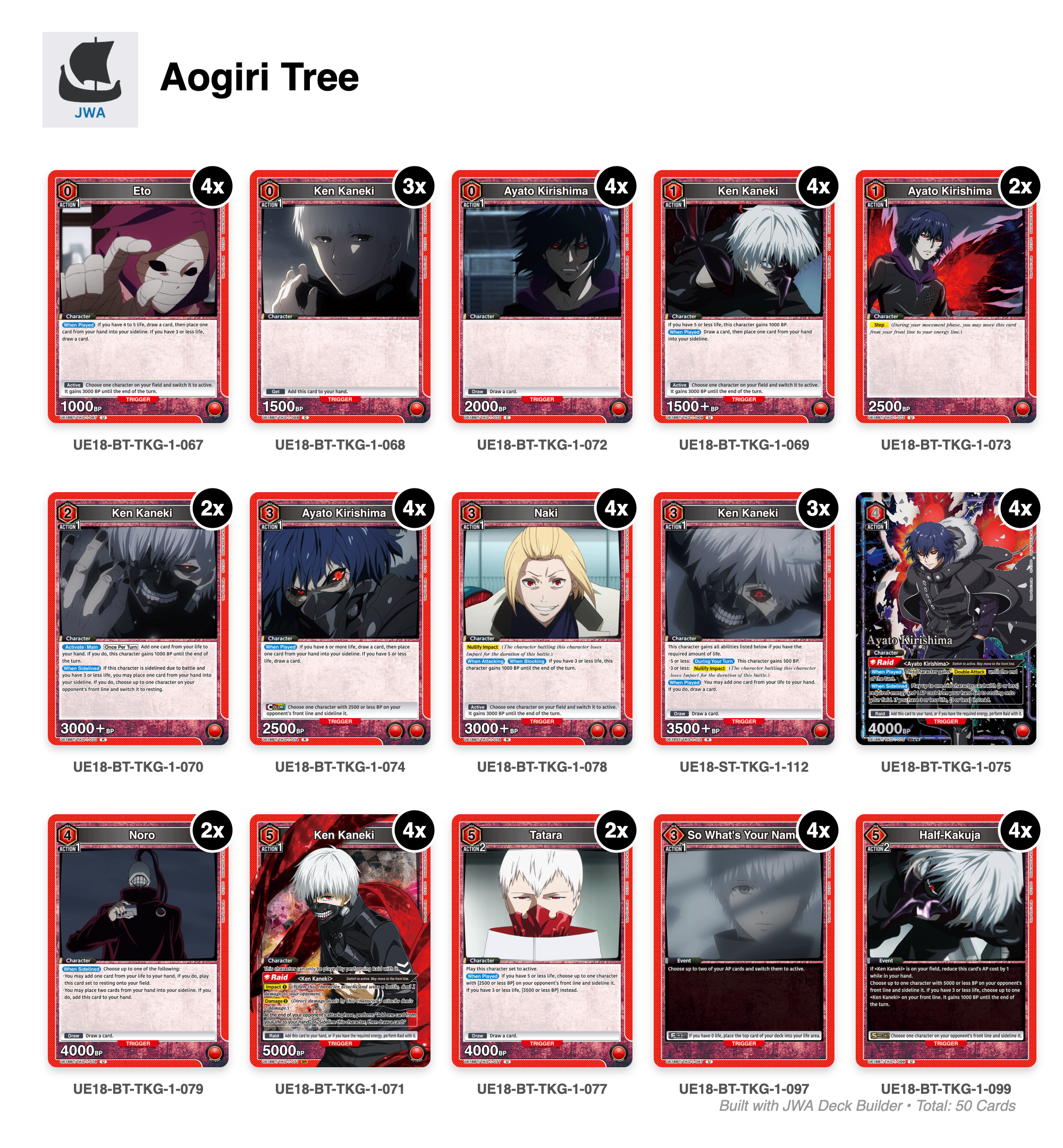Tokyo Ghoul deck list