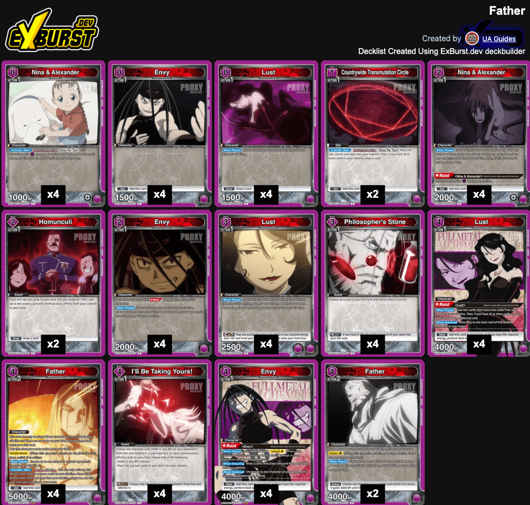 Purple Fullmetal Alchemist Homunculus deck looks strong