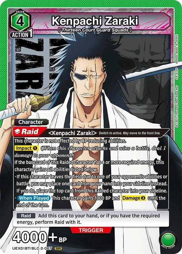Even without the Yachiru buff, however, Raid Kenpachi is pretty intimidating (as that wall of text suggests). For starters, his anti-BP reduction effects are highly relevant in the post BLEACH Vol. 2 meta, helping in the matchup versus BLEACH Purple decks and others.