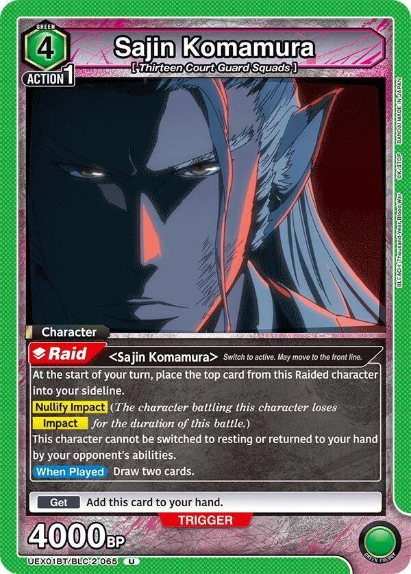 I feel like Sajin will be something of a polarizing card for Green BLEACH players. Some will love the added utility he brings to the deck while others will disdain the fact that he becomes unraided at the start of your turn.